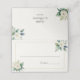 Guide your guests to their seats with a touch of botanical elegance. These tented place cards feature white flowers and green foliage in an attractive watercolor style. A delicate faux gold border frames the front, providing a sophisticated, polished look for your reception tables. Within the border are minimalist lines where the guest's name and table number can be written by hand. The reverse side is personalized with the couple's names and wedding date, ensuring your theme is visible from every angle. Perfect for garden, woodland, or classic ballroom weddings.