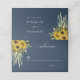 Cartão de Identificação de Casamento Floral Azul Marinho com Girassol e Eucalipto.