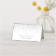 Glitter prateado brilhante elegante em cartões de lugar brancos para sua primavera ou aniversário de verão. Escreva nomes e números de tabela na frente. O verso inclui uma mensagem de "Obrigado" do convidado de honra.