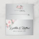 Uma elegante e luxuosa carta de mesa prateada, ela apresenta um tema prateado com rosas cor-de-rosa e um buquê rosa menor nas costas.