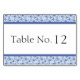 Cartão de mesa de casamento simples e elegante, com padrão florentino, em tons de azul escuro e mais claro, com detalhes espelhados em ambos os lados. Edite a tabela número um de cada cartão de cada vez e adicione separadamente ao seu carrinho de compro o número necessário de mesas. Disponível em 5 outras cores. Veja também outra papelaria de casamento neste design em Monogramas e Monikers no Zazzle.