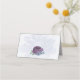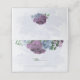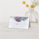 Cartão De Mesa Flores azuis roxas folhas verdes casamento
