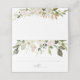 Cartões Elegantes de Casamento Verde: Esta design apresenta um verde e folhagem únicos com rosas brancas no topo. Escreva os nomes dos seus convidados e os números das tabelas. Esta é uma versão dobrável da tenda da placa de lugar.