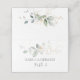 Cartão de lugar dobrado legante com ilustração da folhagem verde e dourada em estilo aquarela. Você pode alterar o número da tabela para seus requisitos (2, 5..7...10...) - toda vez que uma nova placa for usada, e adicionar todas essas placas ao seu carrinho.