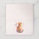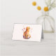 Pequena placa dobrada com uma ilustração adorável de aquarela. Um gato de mesa laranja parecendo amigável e feliz com corações girando em volta.
