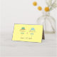 Cartão de lugar para casamento moderno, elegante, amarelo pastel e gay azul com chapéus de chico e ilustração do monograma de gravatas arcos.