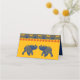 Estes cartões de visita oferecem uma tomada moderna das cerimônias tradicionais de casamento indígenas e recepções com sua corajosa paleta de cor amarelo ouro, vermelho e azul real. As placas de lugar são acentuadas por um motivo geométrico e ilustrações ilustrativas de elefantes em azul real.