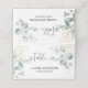 Este design representa um design de cor de água floral. O tema vem em branco verde e ouro.Este simples design elegante minimalista apresenta fundo branco com folhas de eucalipto com buquês elegantes feitos em efeito aquarela. um abstrato verde-claro com estrelas reluzentes adiciona mais detalhes à peça. A intrincada design vai bem com um casamento de outono, verão e primavera. Disponível como uma grande combinação com papel de carta de casamento. Fontes modernas de caligrafia manuscrita são usadas em ouro e letras brancas.