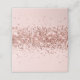 O lado frontal fica vazio ou vazio para adicionar os nomes de hóspedes manualmente. Garota falso brilho rosa dourado brilhante sobre um plano de fundo de cor sólido e personalizável. Cartões de lugar dobrados para o seu casamento moderno.