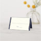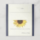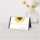 Cartão de assento de girassol em ouro e marfim com sotaque azul no dorso, para elogiar nosso convite de casamento.