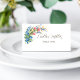 Watercolor Wildflower e Blueberry Rustic Place Card. O estilo romântico com mirtilos, flores lavandas, trevo e eucalipto é perfeito para um casamento de verão rústico. A base da composição é uma coroa de flores silvestres e um círculo de madeira. O sabre de aquarelas complementa a composição das flores e bagas e lhe dá um encanto especial.