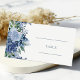 Este elegante cartão de lugar reservado para mesa de casamento floral apresenta uma borda lateral de flores aquáticas em tons de azul. A palavra "mesa" aparece em fontes azuis poeirentas. A parte traseira da placa é azul empoeirado sólido.