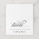 Cartão de escolta de estilo dobrado elegante em branco (a cor de fundo pode ser personalizada) e esquema de cor preta. Apresenta escrevendo de script de caligrafia e sotaque design de rolagem.