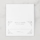 A carta de casamento de Escort inclui um monograma personalizado e design de borda decorativa de canto ornamentado em cor de cinza prateada.