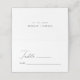 Procurando cartões de lugar simples e mínimos para sua recepção de casamento? Não olhe mais do que estas Mínimas Placas Locais de Números de Tabelas Pretas e Brancas. Com fontes simples e limpas e serif com um belo sotaque caligráfico manuscrito, esses cartões são perfeitos para qualquer casamento minimalista. Essas placas personalizadas são fáceis de personalizar - simplesmente clique em "Personalizar" e digite seus detalhes. Então, veja o resto da coleção para ver todos os itens correspondentes disponíveis nesta bela design. Quer você esteja hospedando uma festa jante, um chá de panela ou um janto de ensaio, esses cartões de lugar de casamento irão adicionar um toque de elegância moderna ao seu evento.