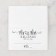 Os cartões modernos de escolta de casamento do Sr. e da Sra. Branca apresentam um esquema moderno de cores preto e branco com letras de caligrafia manuscritas e ousadas com detalhes de rolagem de na moda. Personalize o texto casual, mas elegante, do monograma personalizado para o dia do seu casamento. Inclui espaço para escrever um(s) nome(s) convidado(s) e número da tabela.