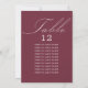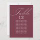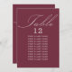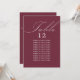 Cartaz de mesa de casamento burgundia com caligrafia elegante e tipografia editável. Design simples e moderna para se adequar às suas cores de casamento. A mesa é escrita manualmente e o modelo está pronto para editar o número da tabela e a lista de assentos de seus convidados.