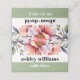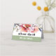 This stunning wedding escort place card features a gorgeous rhododendron branch with peach-pink flowers positioned at the top. To add a touch of elegance, sage green is incorporated at the bottom, creating a sophisticated look that complements the bold typography of the simple text. This combination results in a contemporary and fashionable design that is bound to leave a lasting impression on your guests.
