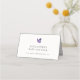 Uma ilustração encantadora de aquarela com um tema de borboleta, com borboletas roxas e flores silvestres roxas e rosadas em um estilo bonito e adorável. A elegante caligrafia lúdica coloca um toque extra e enfeita esse cartão de lugar, perfeito para uma celebração de primavera ou verão com tema de jardim, tema de borboleta, tema de flor silvestre ou tudo mais.