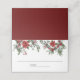 Cartões elegantes de casamento com lindas flores vermelhas de poinsettia com pínus cones e folhas.