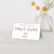 This pink blush woodland deer girl fruit card features the cute heading “Fresh Bites” with bold “Fruit Cups” text and an adorable baby fawn illustration. Perfect for labeling your dessert or snack table and adding a charming woodland touch to your baby shower celebration.