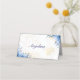 Este elegante e floral cartão de lugar de casamento apresenta rosas de aquarela azuis e folhas em um fundo de aquarela azul são perfeitas para um casamento com tema floral.