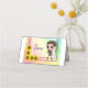 Colocar a Mesa de aniversário de cartão para garotas com uma garota gostando de doces.