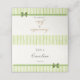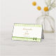Guide guests to their seats with these retro green stripes place cards, featuring table number and guest name inside, plus meal preference space on front and couple names and wedding date on back. Foldable tent style with a subtle bow. This design coordinates with our program fan, belly band, and invitation suite.