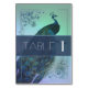 Perfeito para o casamento temido pelo pavão, aqui está uma versão pastel macia de um belo pavão contra um fundo verde macio com sotaque floral.