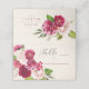 Um floral brilhante e ousado de rosas em tons de burgundy e creme é o ponto focal de muitas das peças deste suite de casamento que também contém textos elegantes e layouts modernos de design. O cartão de lugar da mesa de casamento mostrado aqui mostra tudo acima, assim como um belo abstrato de aquarela no interior em robusto e ameixa. Adicione os nomes da noiva e do noivo e a data do casamento no verso usando o modelo fornecido. Procure ID584 para ver todos os produtos correspondentes a este design.