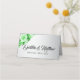 Adicione um toque de elegância do eterno e cor vibrante às suas mesas de casamento com nossos cartões de lugar prateados personalizados. Cada cartão apresenta um buquê espantoso de rosas verdes esmeraldas, meticulosamente trabalhadas num belo acabamento prateado. Surpreenda seus hóspedes com um cartão de lugar que reflita seu gosto único! Perfeito para um casamento de jardim ou para um caso mais elaborado, esses cartões de lugar luxuosos são certamente um bem apreciado para seus hóspedes, muito depois da última torrada.