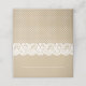 O cartão de lugar de casamento apresenta um charmoso design de fronteira ilustrado de renda branca e renda pontilhada e um fundo com uma aparência texturizada de papel kraft castanho rústico.