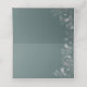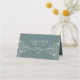 O elegante e simples roteiro de caligrafia sage, cartão verde de casamento, com corda prateada e um lugar floral dourado.
