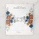 Elegante azul-Marinho, Terracotta, Terra-de-laranja, carta de casamento com buquê elegante de azul-Marinho, rosas-cor Terracotta e folhas verdes de eucalipto. Entre em contato comigo para obter ajuda sobre a personalização ou se você precisar de outro produto com este design.