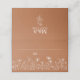 Este cartão apresenta desenhos brancos de flores silvestres em um fundo de terracota (laranja queimado). Isto é parte de uma bela suíte de casamento combinando, incluindo um convite, cardápio, cartas de números de tabela e outros bens essenciais de casamento.