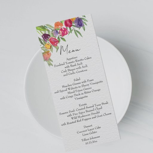 Torne seu Chá de Noiva Divertido e Alegre com este Cartão de Mesa de Tulipas e Verduras em Aquarela Boho que faz parte de uma Coleção Divertida chamada 'Chá de Noiva Tulipas Alegres'. Para personalizar este design, por favor clique no botão "Personalizar".