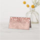 O lado frontal fica vazio ou vazio para adicionar os nomes de hóspedes manualmente. Rosa, brilho fino, blush e rosa dourado falso em folha de metal esfregado, com gráficos brilhantes brancos. Cartões de lugar dobrados para o seu casamento moderno.