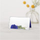 Esses cartões elegantes de casamento são projetados para que você possa impressão o nome e o número da tabela em um rótulo de endereço branco padrão e os afixe em cada cartão. A design romântica apresenta um adorável e longo rosa real, azul ou cobalto, ao lado. As costas têm os nomes dos casais e a data do casamento.