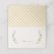 Created to coordinate with the "Sweet Floral" birth announcement collection, this pretty, folded place card features space for a guest's name and table number, framed by a wreath of delicate flowers and leaves. The inside of the card has space for a custom message, and the back of the card features a yellow, hand-drawn gingham pattern. This place card is perfect for baby showers, as well as bridal showers and weddings.