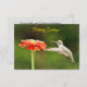Trabalho de arte digital original que consiste na minha fotografia original de um beija-flor voando em direção a uma bonito flor vermelha da Zinnia, processada em um estilo ligeiramente impressionista e pareceria. Esta é uma placa de nota simples de 3,5" x 5". O verso tem um tom de cinza e diz: "No seu aniversário, que o Deus abençoe de felicidade e muito mais bênçãos no próximo ano!". Há também espaço no verso para adicionar texto ou escrever as suas próprias notas quando o seu pedido chegar. São saudações econômicas para amigos e parentes. Ainda é bom receber cartões reais e deixar que os seus especiais saibam que estão a pensar neles.