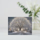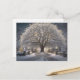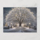 Árvore beijada de neve e estrada sob um céu. Flocos de neve caídos tecem uma tranquila noite de inverno. Ideal para cartões de Natal. Abraça a magia da estação com esta cena encantadora.