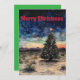 Um cartão de Natal de dois lados, com uma bela árvore de Natal no deserto. A frente diz: Feliz Natal. O verso diz: Do Sudoeste Americano!