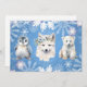 Uma raposa branca, pinguim e urso polar com flocos de neve azuis estão "Desejando a você um Natal branco como estes animais árticos."