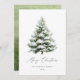 Compartilhe a beleza da estação com este elegante cartão de Natal apresentando uma única árvore de pinheiro nevada contra um suave fundo de aquarela verde. A fonte de letra cursiva delicada adiciona um toque atemporal e gracioso - perfeito para enviar votos sinceros para familiares e amigos. Este design minimalista, mas festivo, traz um toque de natureza e sofisticação para os seus cumprimentos de Natal. Personalize com o nome da sua família e o ano para um presente personalizado que captura o espírito tranquilo do inverno.