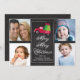 Cartão de Natal popular e moderno para quatro fotos da família, apresentando um simpático caminhão de Natal com árvores de Natal fofas e um laço vermelho, tudo em um quadro negro elegante e moderno. Lindo cartão de Natal para mostrar sua família maravilhosa que seus filhos vão adorar!