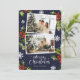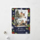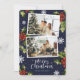 Foto azul Cartão Feliz de Natal com flocos de neve e groselha com bagas em fundo azul. Personalize facilmente este cartão de feriado fotográfico com as suas fotografias e texto.