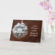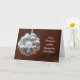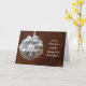 Lindo cartão de Natal com uma bola de enfeites prateados, interior em branco.