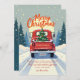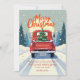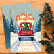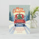 Capture o coração do Natal rural com este cartão de férias rústico apresentando um caminhão vermelho vintage carregando uma árvore festiva por uma estrada nevada. Personalizado com o nome da sua família e ano, este design nostálgico é perfeito para aqueles que apreciam o estilo de casa de fazenda e tradições atemporais. A mensagem calorosa e o cenário fazem dele ideal para espalhar alegria para os entes queridos perto e longe.