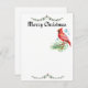 Cartão cardeal vermelho de natal com terra verde. Feliz Natal.
