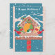 Um cartão de Natal chapado fofo com uma casa de pássaros festivos e um casal de cardeais. Personalize com seu próprio cumprimento de Natal e o nome da sua família.